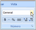 Predeterminadamente, los números aparecen en la categoría General, lo cual significa que no hay ninguna configuración especial.