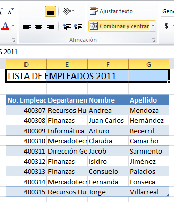 Es posible combinar varias celdas en Excel y centrar el texto dentro de ellas. Un uso común de esta funcionalidad es colocar un título sobre una tabla de datos de manera que se extienda a lo ancho de la misma.