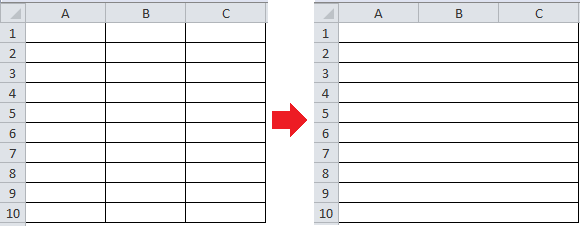 Si desde un principio deseas combinar varias celdas sin que el texto sea centrado, debes seleccionar la opción Combinar celdas dentro del menú desplegable. Dentro del mismo menú, la opción Combinar horizontalmente ayuda a unir solamente las filas del rango seleccionado. Observa el resultado de seleccionar esta opción sobre el rango A1:C10: